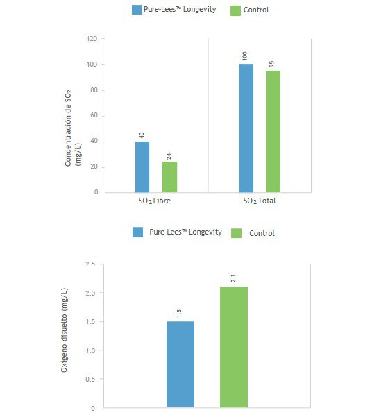 La bodega solía usar taninos gálicos para protegerse de la oxidación durante la estabilización por frío ya que la bajada de la temperatura retenía más oxígeno disuelto. Tras la estabilización por frío, cuando subió de nuevo la temperatura, el oxígeno disuelto provocó reacciones de oxidación, de ahí la necesidad de proteger al vino. Por eso la retención del oxígeno en esta etapa temprana con Pure-Lees™Longevity resulta ser interesante como estrategia para ser eficientes en la protección del vino mientras se reduce el uso de SO2.