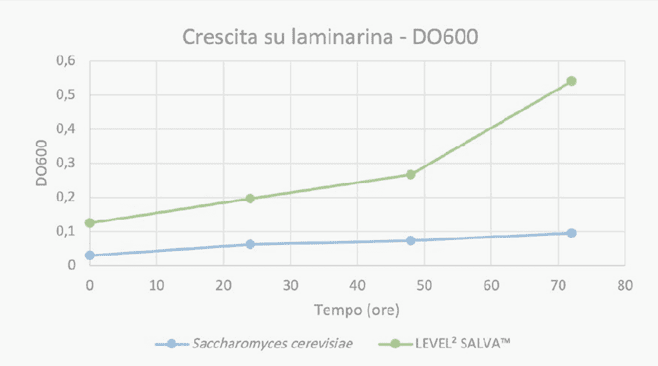 Este mecanismo fue demostrado mediante ensayos experimentales (Fig. 1) utilizando un medio carente de fuentes de carbono, pero que contenía laminarina, un polisacárido estructuralmente similar a los β-glucanos de la pared de Brettanomyces. La ruptura de los enlaces glucosídicos de la laminarina y la consiguiente liberación de glucosa, llevadas a cabo por la proteína Spkt1, permitieron el crecimiento de LEVEL2 SALVA™.