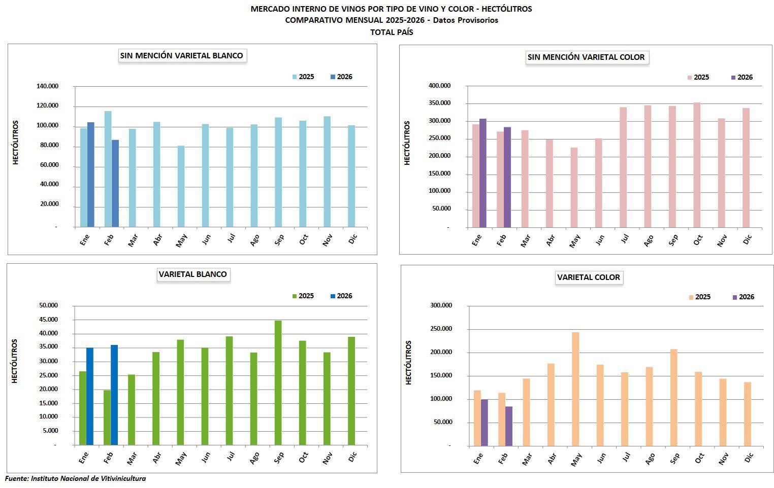 Comparativos 2025 – 2026 por tipo de vino y color