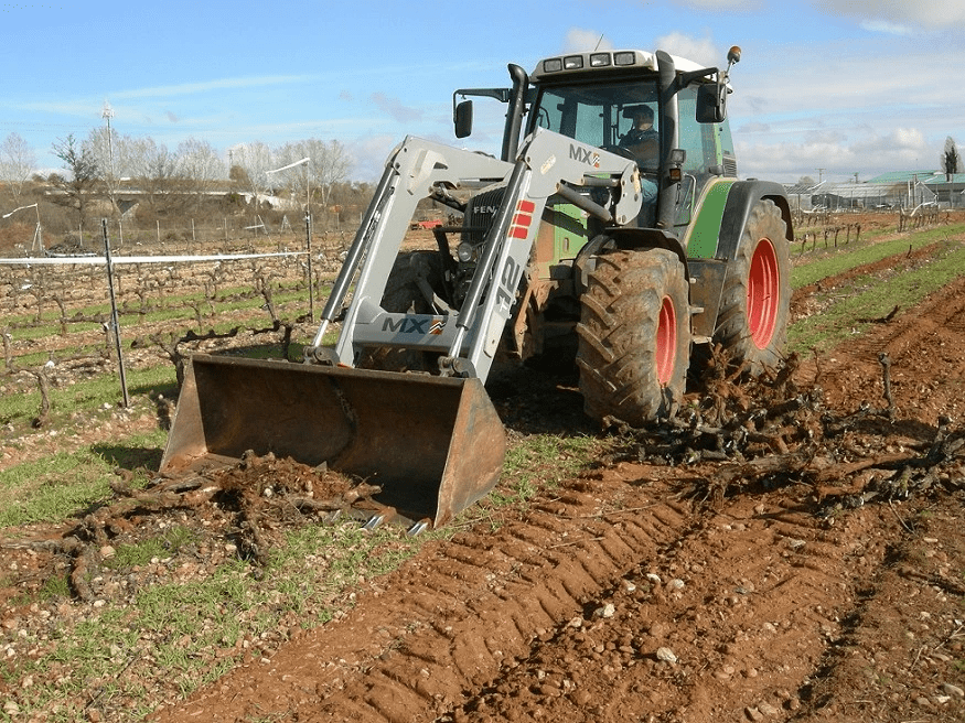 El arranque de cepas fue realizado mediante cadena operada con elevador de tractor cuando el terreno se encontraba en adecuado estado de tempero, para optimizar la extracción del sistema radicular. Una vez arrancadas las plantas enteras, se limpió la tierra adherida a las raíces, observando que todas las cepas arrancadas contaban con sus raíces principales (0>5 mm) según la clasificación de Richards de 1983 [6].