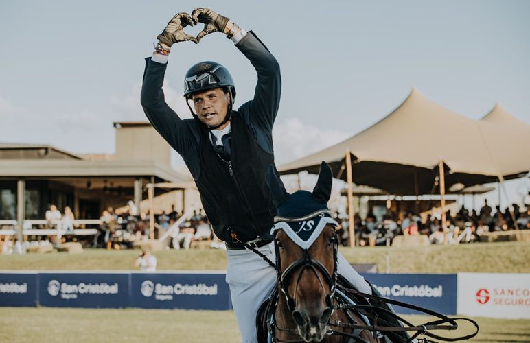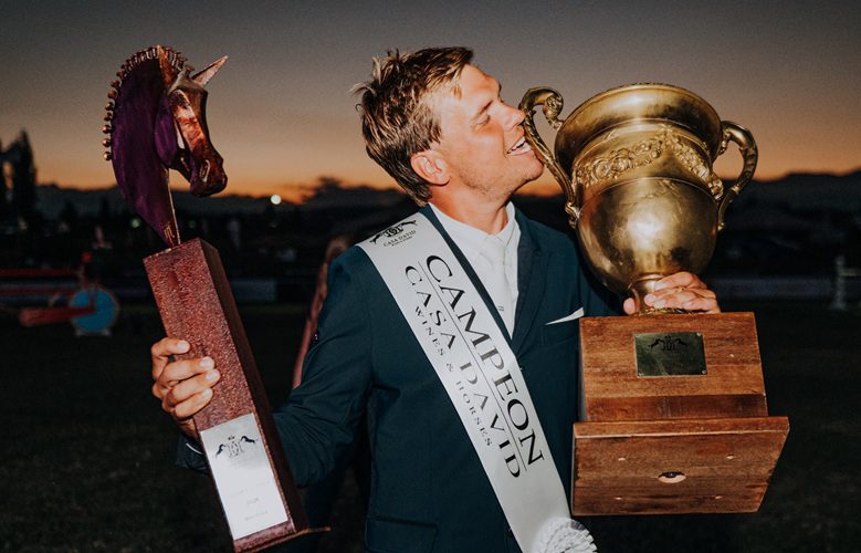 Junto a su partner Henry Jota Loho, el joven jinete desplegó este domingo una performance que ya había demostrado en días anteriores y subió al podio para levantar la Copa Casa David por su gran desempeño en la competencia de saltos de 1,40 mts, en primera categoría. Esta final consagró con el subcampeonato a Fernando Comune y su caballo Comme Ci Comme Ca del Club Hípico Argentino y en tercer lugar a Víctor Manuel Rico junto a Santa Ana Caramelo del Jockey Club Rafaella.