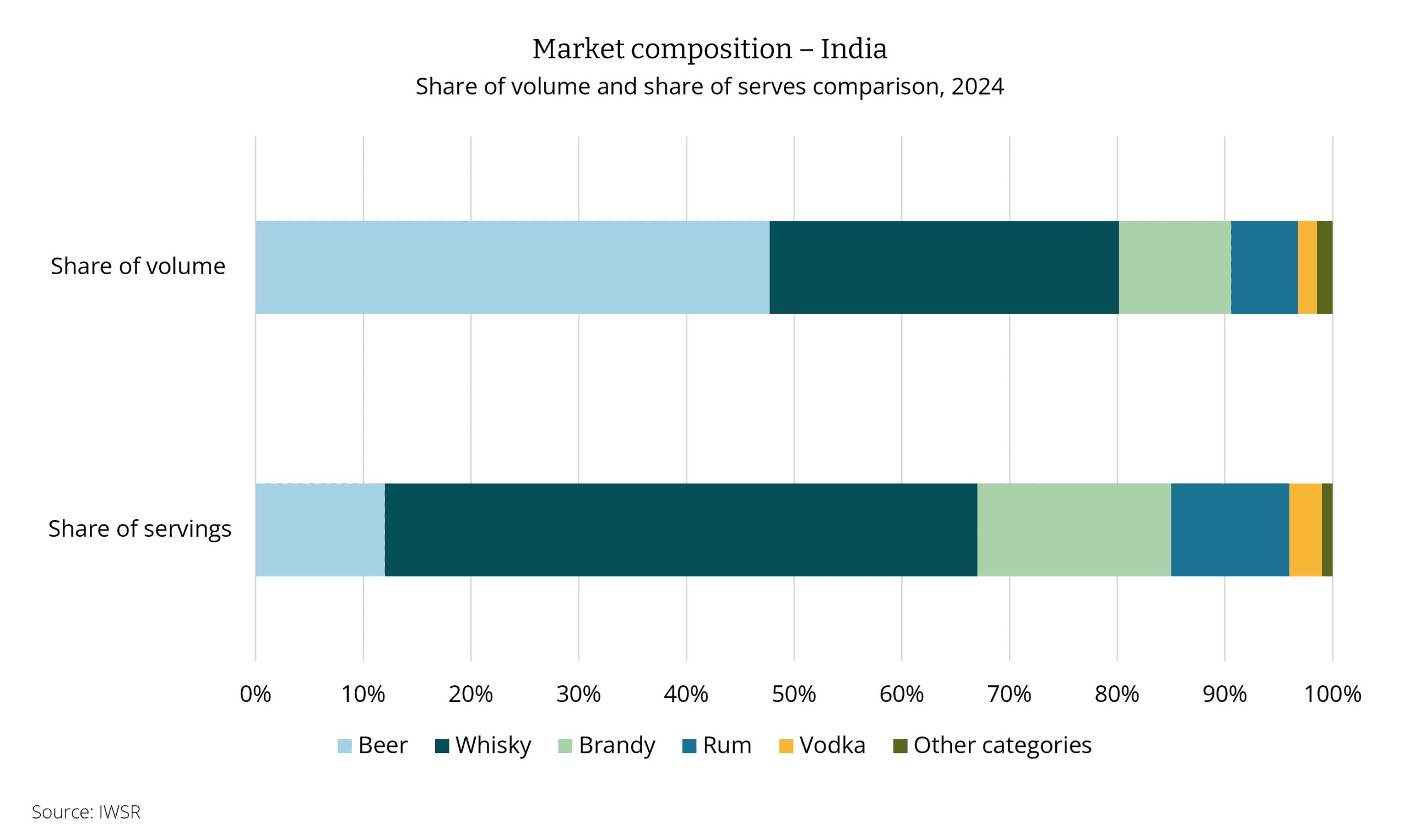 Según un informe de la empresa británica IWSR, el mercado de bebidas alcohólicas de la India tiene un enorme potencial para los próximos años; sin embargo, la competencia es intensa y el panorama del mercado sigue siendo muy complejo, con una base de consumidores muy consciente del valor. Esto significa que las empresas deberán desenvolverse con cuidado y estar preparadas para adaptarse a los cambios.