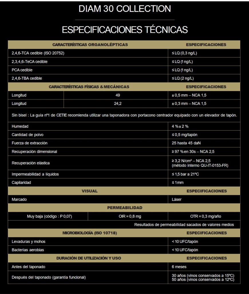 Inicialmente lanzado en formato equivalente a Diam 30 (49 mm), su desarrollo se inscribe en una estrategia más amplia de evolución del corcho técnico, con posibles extensiones a otras categorías, incluidos vinos espumosos.
