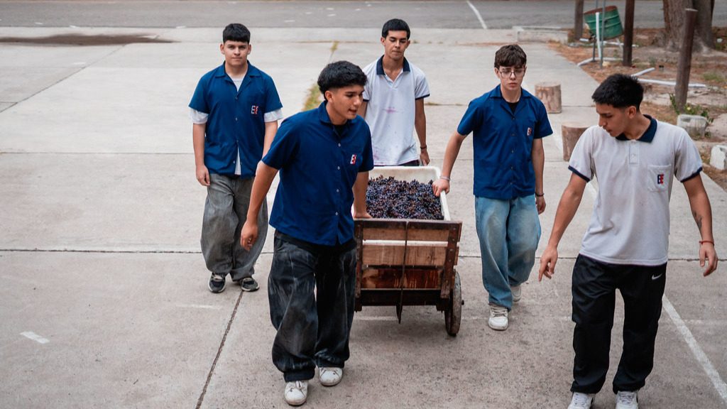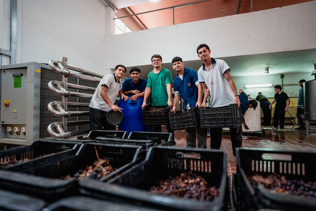 La reactivación de la bodega también se vincula con la primera cosecha del cultivo de vid implantado en 2023, fruto del trabajo sostenido de la comunidad educativa, que permite a los estudiantes involucrarse en todo el proceso. En esta etapa, se estima una producción de aproximadamente 2.000 litros de vino, elaborados a partir de uvas provenientes tanto de los parrales de la institución como de donaciones recibidas.