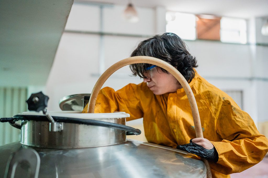 El proceso de reactivación comenzó a partir de un financiamiento obtenido a través de la Fundación Banco San Juan, que permitió adquirir equipamiento clave para el funcionamiento del área productiva: tres tanques de acero inoxidable, una prensa hidráulica y un filtro de laboratorio.