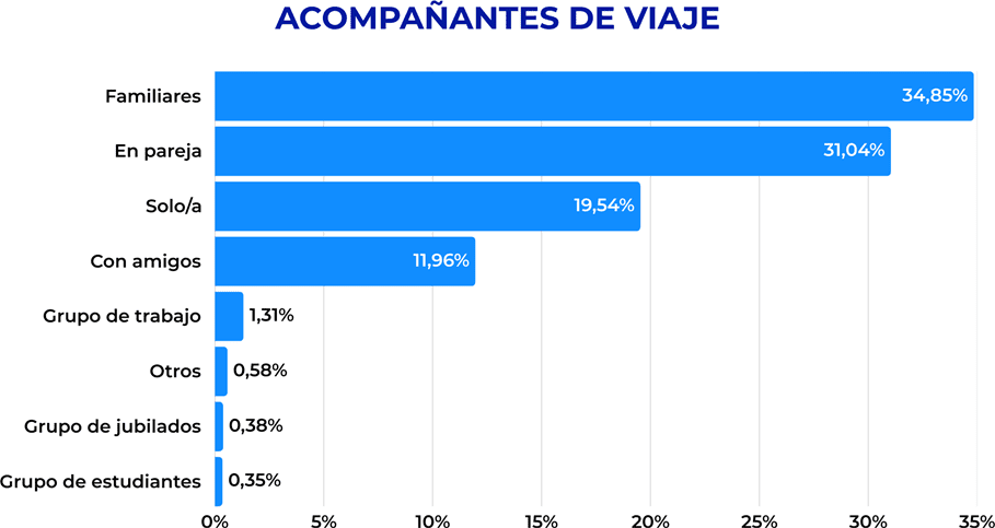 A la vez, los viajes con amigos también tienen un peso relevante, con el 12% del total. Este perfil confirma una demanda heterogénea que denota una demanda anual más estable sin picos tan acentuados en los recesos escolares como era hace más de una década. Asimismo, la oferta turística está preparada para recibir tanto escapadas en pareja como viajes familiares, salidas con amigos y experiencias individuales que buscan tanto la camaradería de un hostel como el lujo de un lodge.