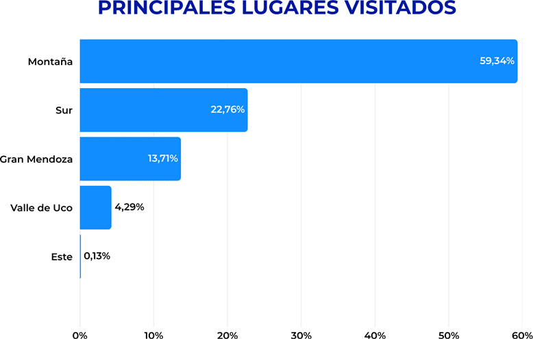Esta fuerte polarización en la elección de destinos se fundamenta, por un lado, en el alto interés manifestado por el Turismo Naturaleza. Por otro lado, la cercanía de estos destinos dominantes a los principales centros de distribución de visitantes (como la Ciudad de Mendoza y la Ciudad de San Rafael) actúa como un factor logístico clave para explicar esta distribución de las visitas.