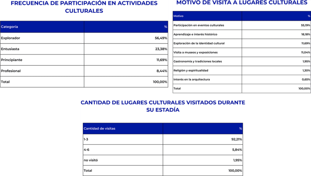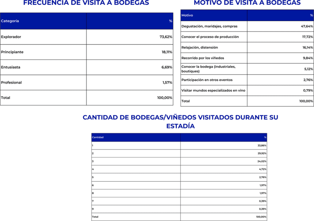 Finalmente, la encuesta incorporó módulos específicos sobre enoturismo, gastronomía, turismo de naturaleza y turismo cultural, para profundizar en la demanda de cuatro productos clave de la provincia y conocer con más detalle cómo se vinculan los visitantes con esas experiencias.