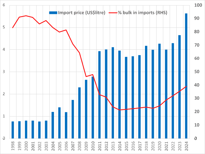 Esta expansión de la producción nacional respondió al crecimiento de la demanda, a pesar de la mayor competencia de las importaciones de vino embotellado tras la reducción arancelaria. El aumento de la producción, junto con el crecimiento de las importaciones, permitió que el consumo aparente de vino se triplicara en la década que culminó a mediados de la década de 2010 (Figura 3).