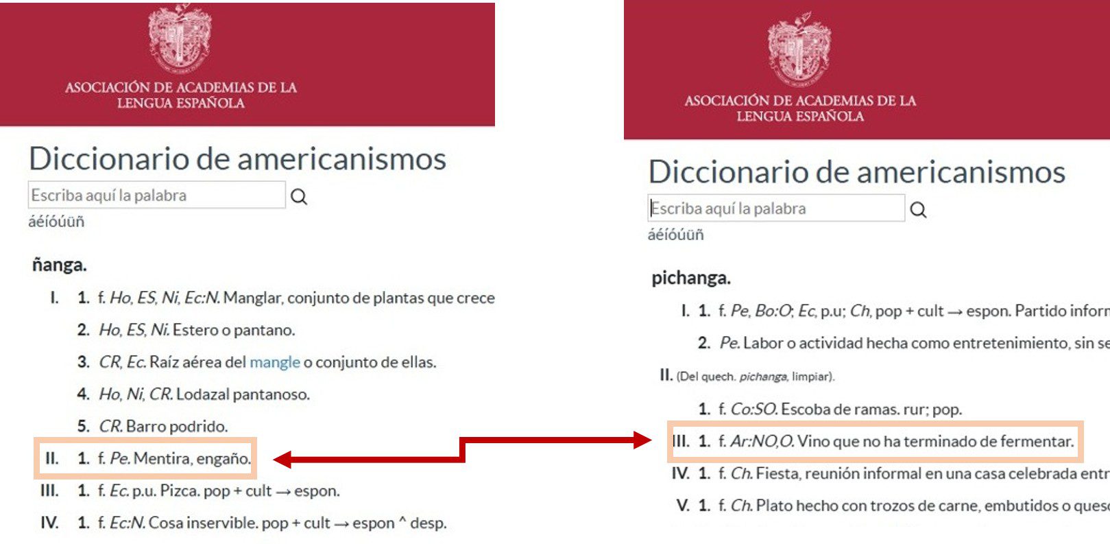 Según el Diccionario General de Americanismos (DiGA) este término proviene del quechua. Esta obra -de la Asociación de Academias de la Lengua Española (ASALE) en colaboración con la Real Academia Española (RAE)- es el repertorio más completo sobre el léxico propio del español en América. Contiene cerca de 70.000 voces, lexemas complejos, frases y locuciones, junto con un total de 120.000 acepciones que describen su uso real en el continente