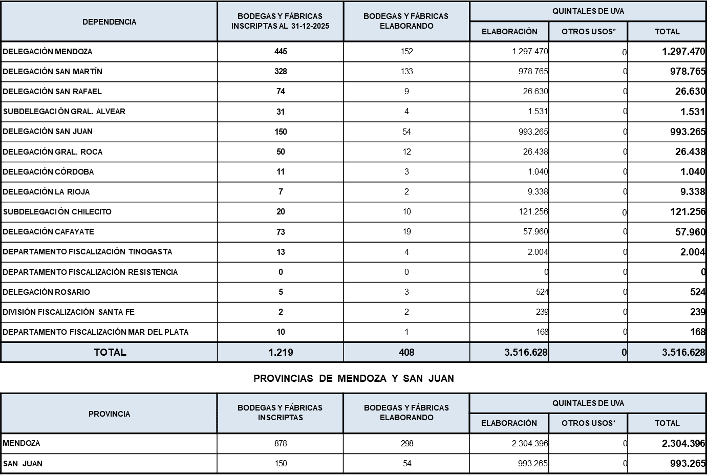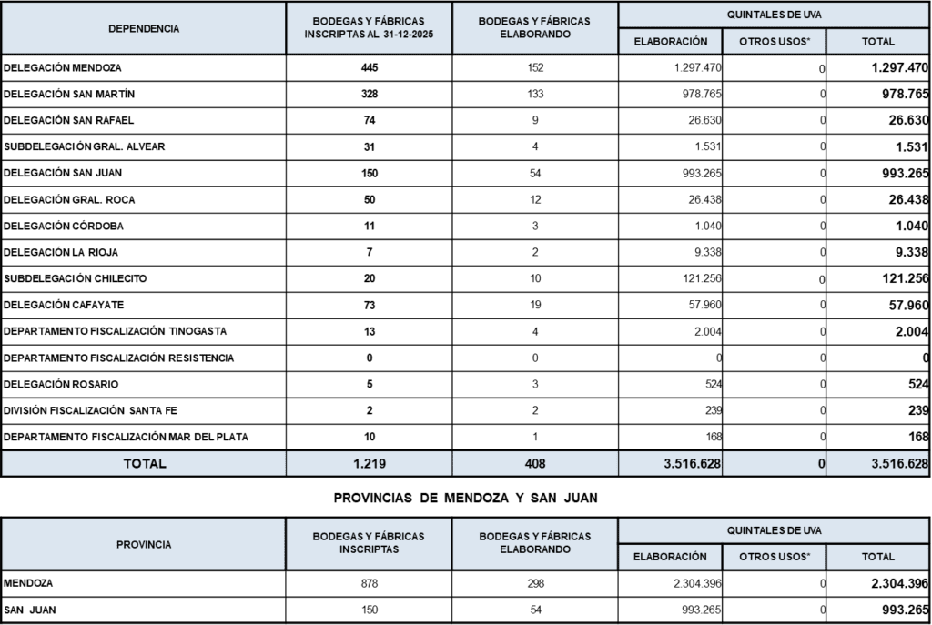 En la provincia de Mendoza se cosecharon 2.304.396 qq (-25,6%), mientras que San Juan lleva 993.265 qq (-30%).