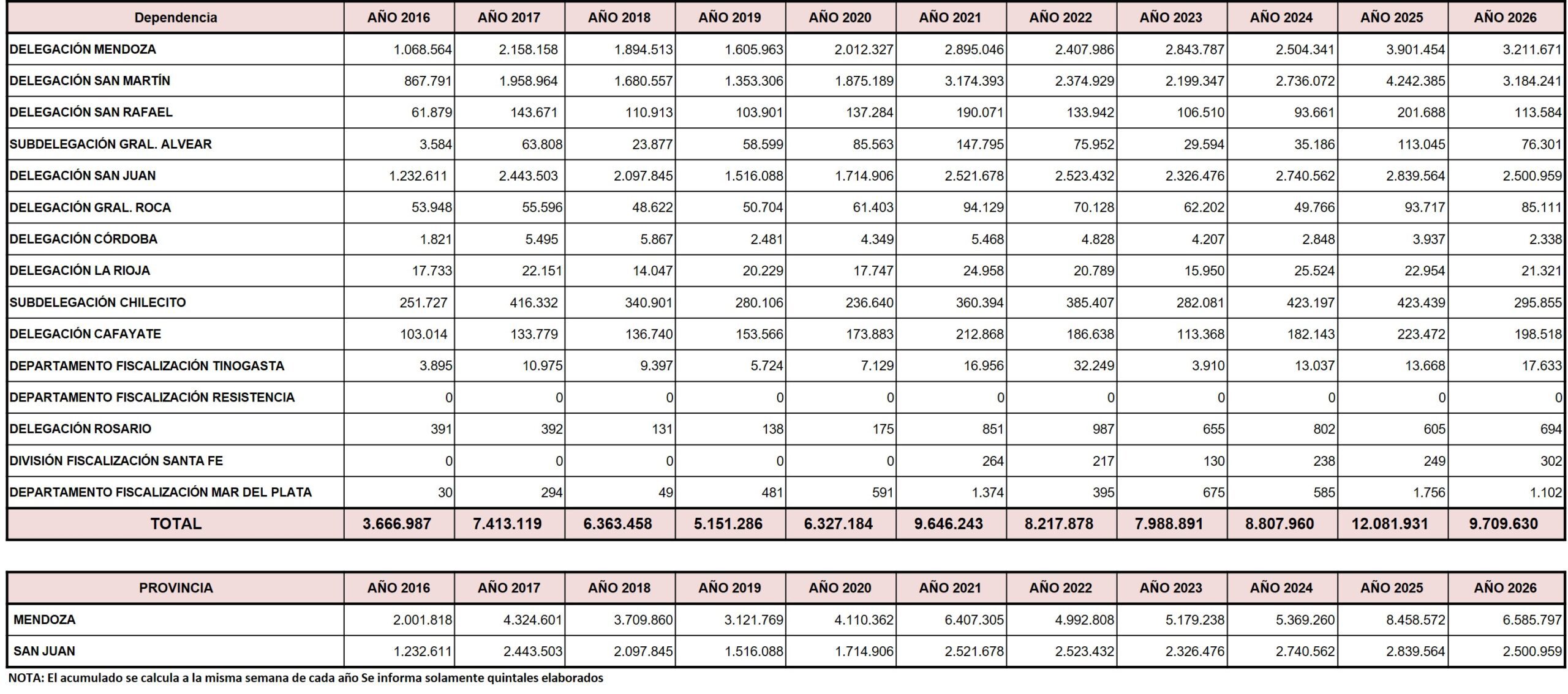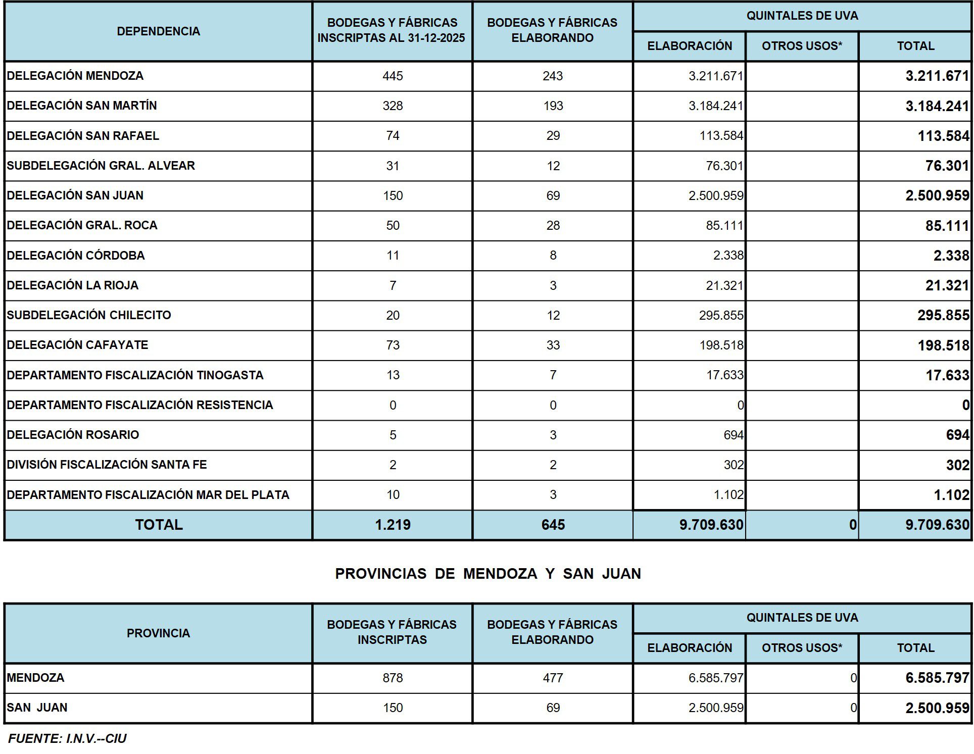 En la provincia de Mendoza se cosecharon 6.585.797 qq (-22,2%), mientras que San Juan lleva 2.500.959 qq (-11,9%).