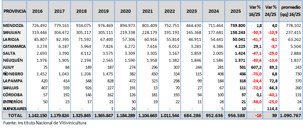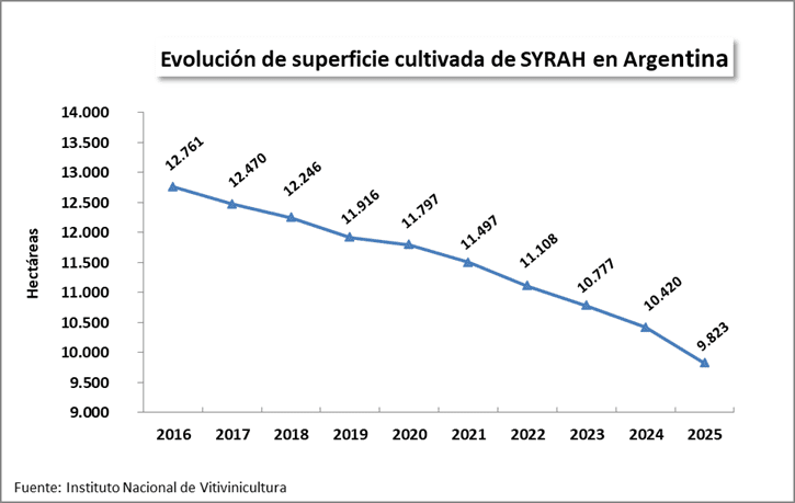 El 18 de febrero se celebró el Día Internacional del Syrah, y para conocer más el comportamiento de ésta cepa de origen Persa, el Instituto Vitivinícola Argentino (INV) publicó un informe con datos de superficie, producción y comercialización durante 2025. Año en el que la superficie en Argentina en 2025, fue de 9.823 ha (-5,8% respecto 2024), pero su producción fue de 956.588 quintales (+0,4%).